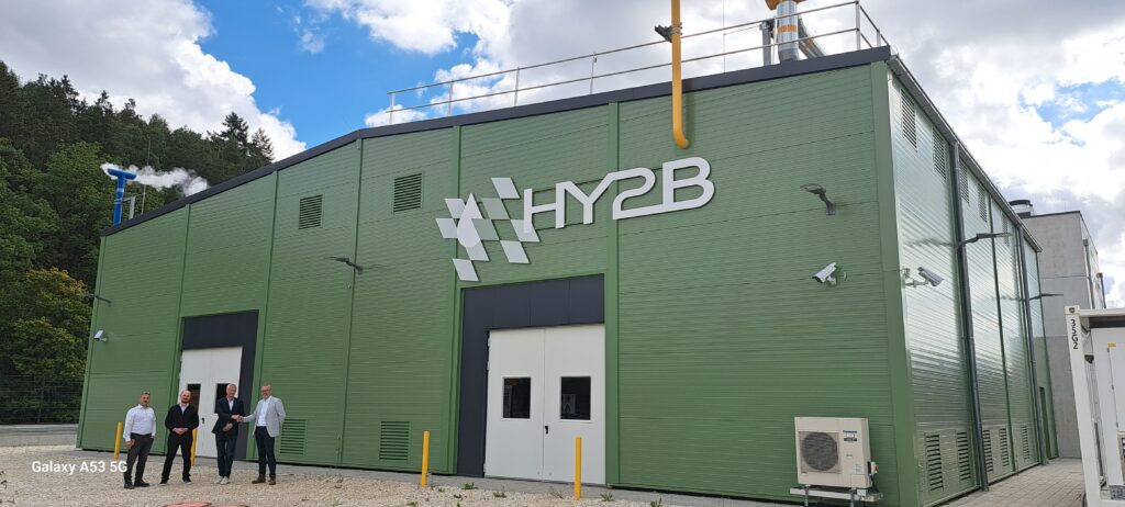 Die Hy2B Wasserstoff GmbH erreicht zeitgleich zwei wichtige Meilensteine auf dem Weg zur nachhaltigen dezentralen Wasserstoffwirtschaft in Deutschland: Die Hy2B ist als Produzent und Händler für die Produktion und Auslieferung von grünem Wasserstoff RFNBO (Renewable Fuel of Non-Biological Origin) nach der europäischen Vorgabe der „Renewable Energy Directive“ zertifiziert worden und startet den netzintegrierten Automatik- und Regelleistungsbetrieb. Damit legt der 5 Megawatt Elektrolyseur der Hy2B in Pfeffenhausen nicht nur den Grundstein für eine wirtschaftliche grüne Wasserstofferzeugung, sondern übernimmt auch eine netzstabilisierende Funktion als regelbare Last im hoch belasteten Stromnetz, hilft Abregelungen von überschüssigem Solarstrom zu verringern und unterstützt die Entwicklung einer stabilen dezentralen Energieversorgung.